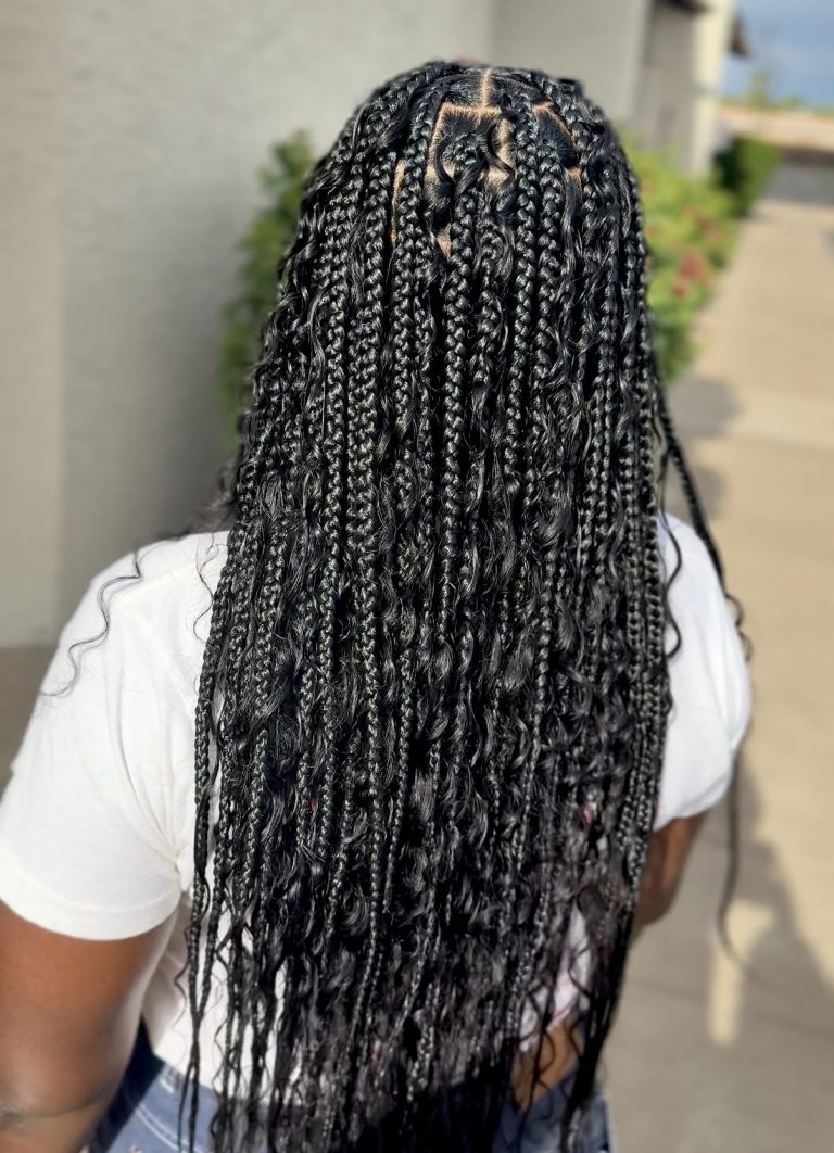 “Janiese is beyond talented! She took the extra time to educate me on my scalp and get the products needed to ensure a flawless base for my beautiful braids. Thank you for having such a calming presence and thank you for the lovely braiding experience!”